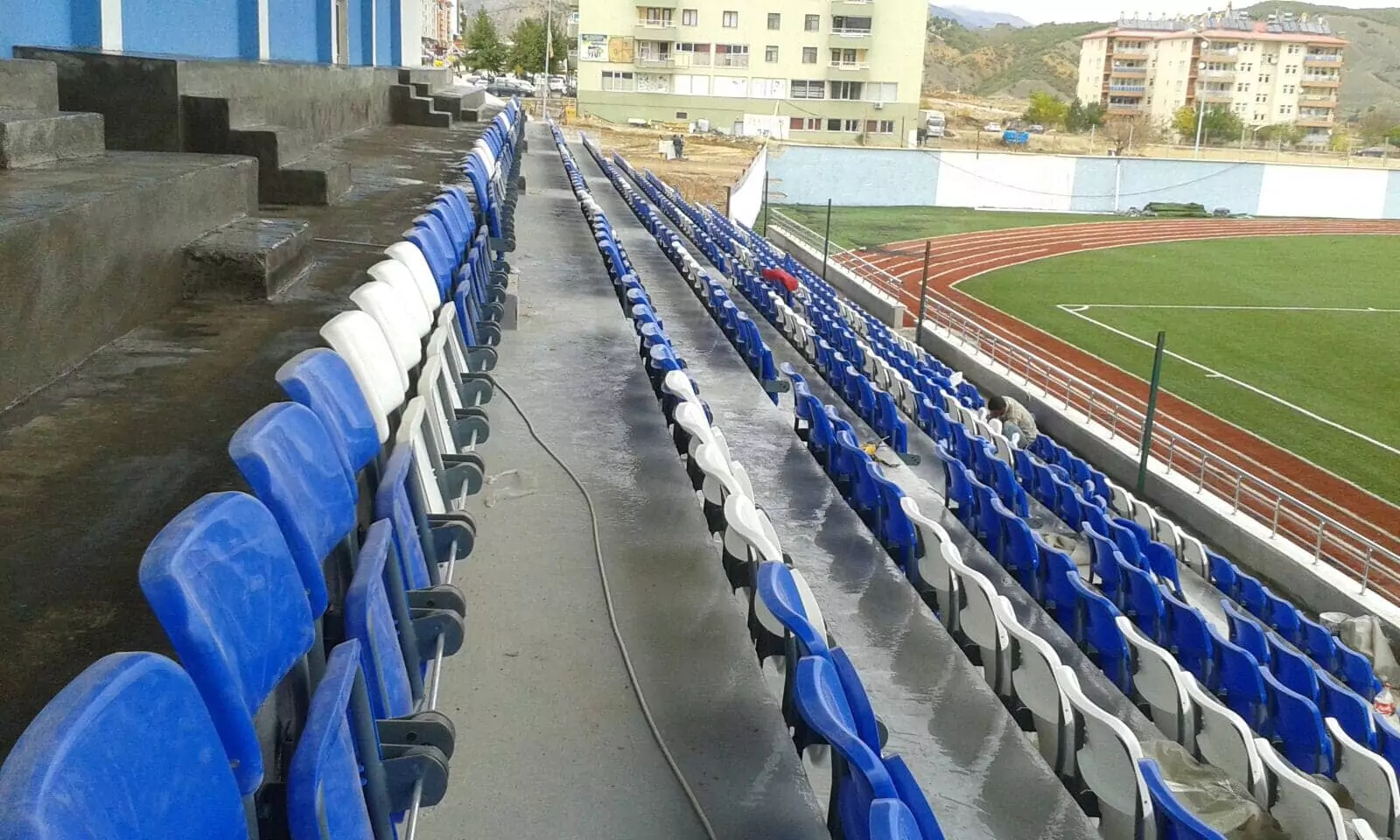 Zorlu hava koşullarına uygun stadyum koltukları.