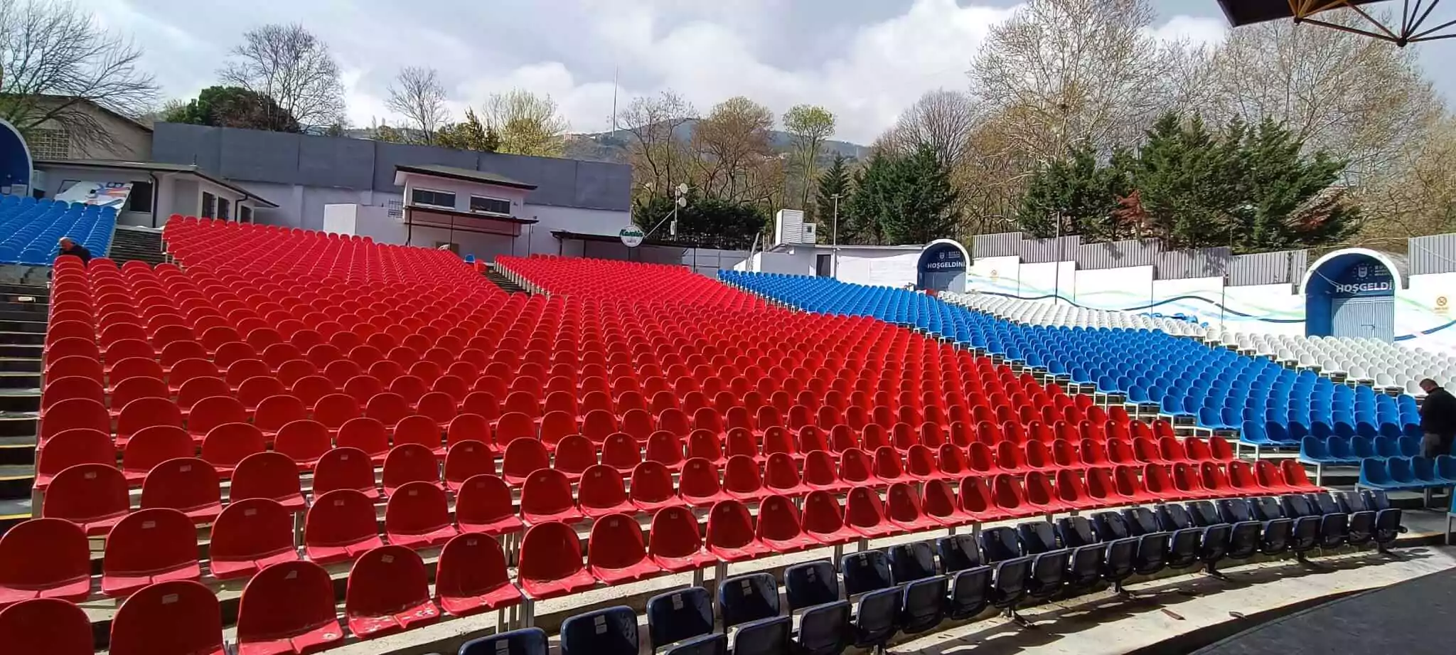 Zorlu hava koşullarına uygun stadyum koltukları.